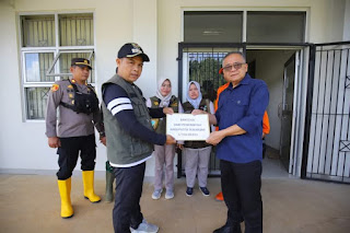 Di sela-sela kesempatan, Wabup beserta jajaran menyerahkan bantuan secara simbolis kepada warga yang terdampak.